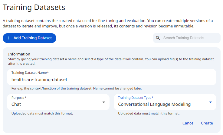After registration, the training dataset becomes available for authorized users and can be safely reused across fine-tuning workflows with full versioning, governance, and traceability.